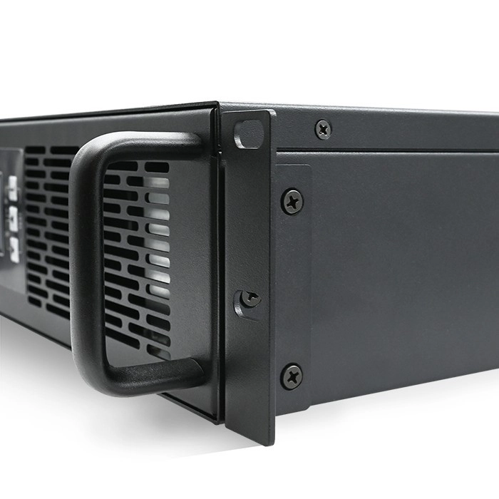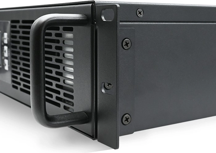 Het geïntegreerde LCD-scherm toont de belangrijkste parameters en de status van de UPS. Lage hoogte voor een 19"-rack en robuuste uitvoering vergemakkelijken installatie en beheer.