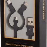 De kabel ondersteunt snelladen dankzij de volgende laadstromen: Micro‑USB: 2,1 A, USB‑C: 3 A, Lightning: 2,4 A. De gegevensoverdrachtsnelheid bedraagt tot 480 Mb/s, wat het snel overzetten van bestanden tussen apparaten vergemakkelijkt.