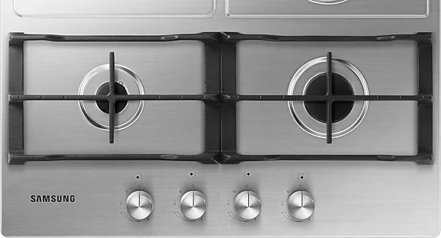 De Samsung gaskookplaat is uitgerust met krachtige branders met een vermogen van 10,1 kW, die snel en efficiënt koken garanderen. Ideaal voor het aan de kook brengen van water of gerechten die nauwkeurige warmtebehandeling vereisen.