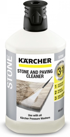 De nieuwe 3-in-1 steenreiniger reinigt niet alleen alle steenoppervlakken grondig, maar beschermt ze ook tegen de negatieve invloeden van weersomstandigheden.