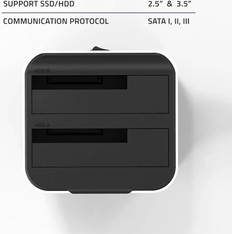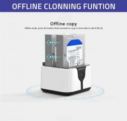 Dit station biedt geautomatiseerd dataklonen via USB of in offline modus. Plaats de schijven in de juiste sleuven, schakel de voeding in en start het kloonproces met één druk op de knop COPY.