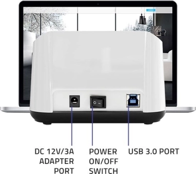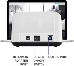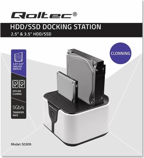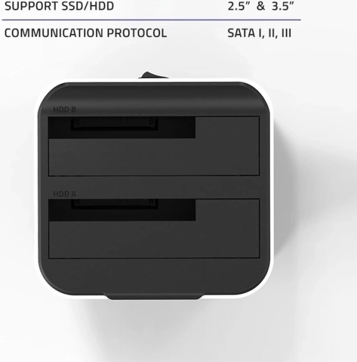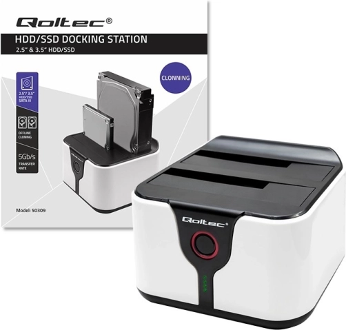 Onze desktop-dockingstation biedt de mogelijkheid om twee schijven (SSD of HDD) gelijktijdig aan te sluiten, in de formaten 2,5" en 3,5". Dankzij rubberen voetjes staat het apparaat stabiel. Installatie is eenvoudig dankzij Plug & Play, er zijn geen speciale technische vaardigheden nodig.