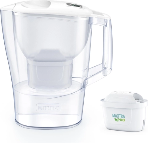 Geniet elke dag van schoner en lekkerder water met de BRITA Aluna waterfilterkan van 2,4 l. Dankzij de MAXTRA PRO Pure Performance filterpatroon krijg je constante kwaliteit van gefilterd water, minder kalkaanslag in huishoudelijke apparaten en bespaar je geld en plastic ten opzichte van flessenwater. De kan is eenvoudig te onderhouden, kan in de vaatwasser (behalve het deksel met indicator) en past perfect in het koelkastdeurvak.