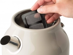 Het uitneembare en afwasbare filter vangt onzuiverheden op. Een reservefilter in de verpakking verlengt de levensduur van de waterkoker.