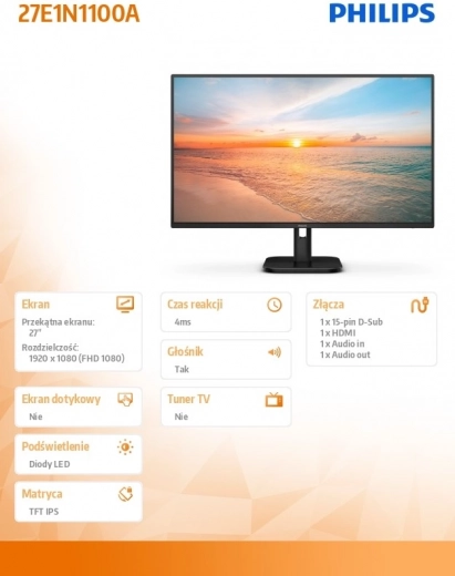 De Philips‑monitor met 27‑inch scherm biedt uitstekende beeldkwaliteit dankzij het IPS‑paneel, dat levendige en consistente kleuren vanuit verschillende hoeken garandeert. Met een verversingssnelheid van 100Hz is hij geschikt voor vloeiend kijken van video’s en gaming.