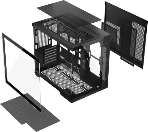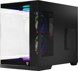 De VOLCANO Panorama is een degelijk afgewerkte computerbehuizing met panoramisch zicht op je componenten – de voor- en zijpanelen van gehard glas laten je grafische kaart, RAM en koeler schitteren. De dual‑chamber indeling met verticaal gemonteerde voeding scheidt het servicegedeelte van de hoofdruimte en zorgt voor nette kabelgeleiding en een perfecte presentatie van je build. Dankzij de ondersteuning voor moederborden met omgekeerde connectors ben je klaar voor moderne trends en toekomstige upgrades.