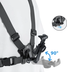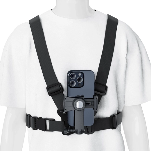 Universele borstband voor telefoon en GoPro-camera’s met een ingebouwd spiegeltje voor nauwkeurige kadrering. Elastische, volledig verstelbare banden en een vergrendelbare houder voor stabiele en veilige bevestiging van de telefoon (breedte 52–87 mm, hoogte 117–150 mm). Ideaal voor hands‑free sportopnames.