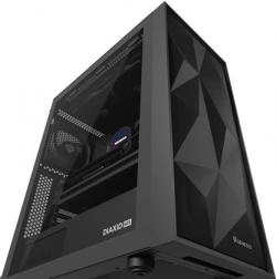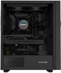 GENESIS Diaxid 605F is een moderne midi‑tower behuizing ontworpen voor liefhebbers van prestaties en koelte. Drie inlaatventilatoren aan de voorkant en twee uitlaatventilatoren aan de achterzijde zorgen voor positieve druk en uitstekende luchtcirculatie, terwijl het fijne voorste mesh en de magnetische filters aan de boven- en onderzijde stof in toom houden. De behuizing is compatibel met AIO‑koelers tot 420 mm aan de voorzijde en biedt volop ruimte voor lange grafische kaarten en hoge torenkoelers.