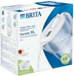 De BRITA Marella XL is ontworpen voor dagelijks comfort. Het grote volume van 3,5 l (2,0 l gefilterd water) voorziet in de behoeften van het hele gezin, het deksel met klep maakt vullen met één hand mogelijk en het slanke design past in de koelkastdeur. De elektronische indicator BRITA Memo herinnert na 4 weken aan het vervangen van het filter, zodat u verzekerd bent van optimale prestaties.