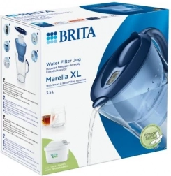 De BRITA Marella XL kan biedt 3,5 l totaal volume en tot 2,0 l gefilterd water per vulling. Dankzij het klepdeksel vul je hem met één hand; de kan is vaatwasserbestendig (behalve het deksel met elektronica) en past met zijn afmetingen in het koelkastdeurvak. De elektronische BRITA Memo herinnert elke 4 weken aan het vervangen van de filter.