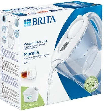 BRITA Marella 2,4 l met wit deksel biedt comfortabel vullen, ergonomische grip en eenvoudig onderhoud. Ideaal voor in de koelkast en voor het hele gezin.