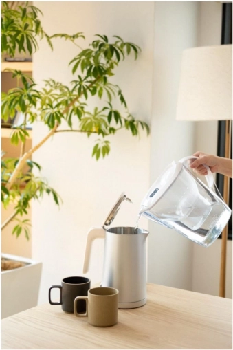 Totale inhoud van 3,5 l (ca. 2,4 l totale kannencapaciteit en 1,4 l gefilterd water per vulling) dekt de hele dag door drinken en de bereiding van dranken en maaltijden.