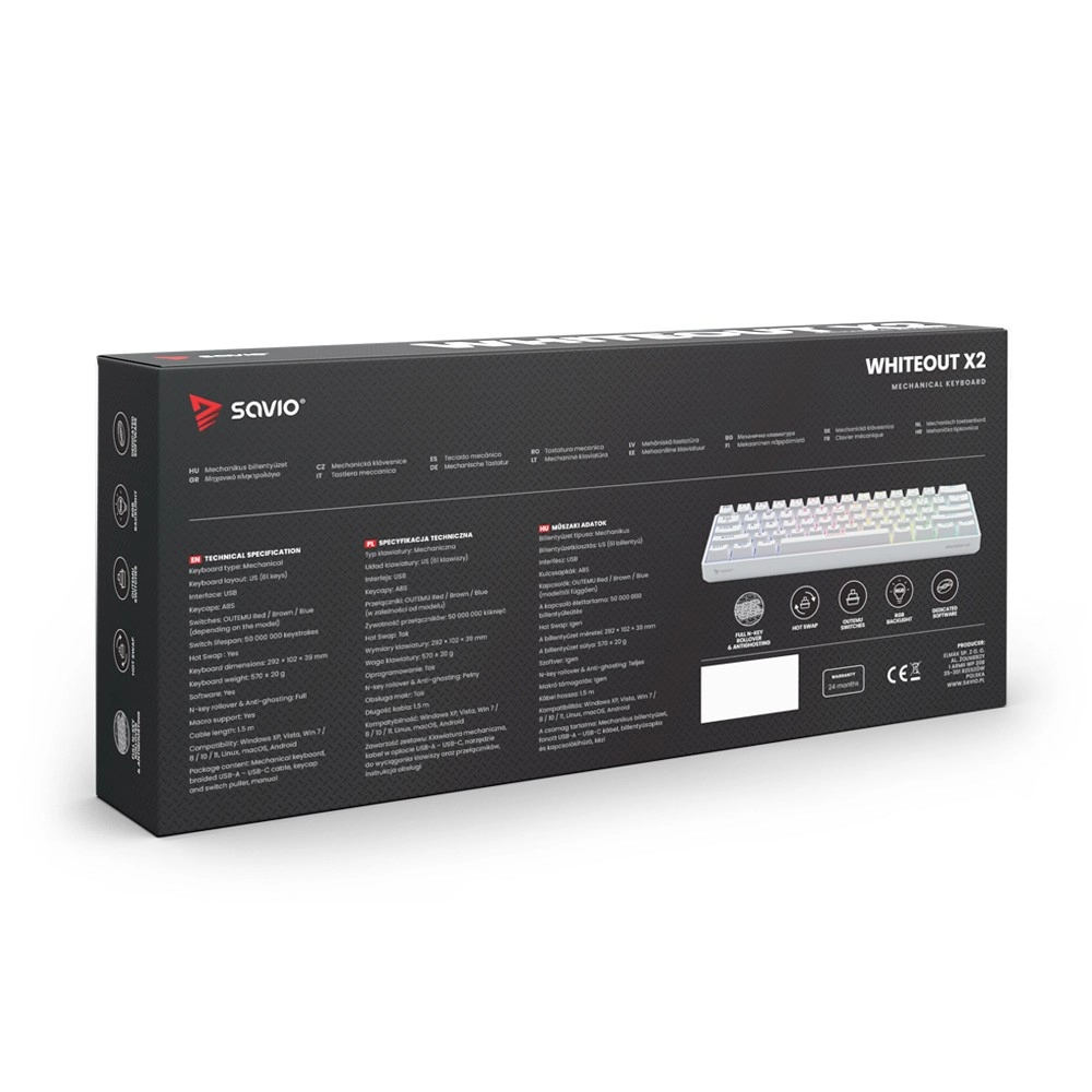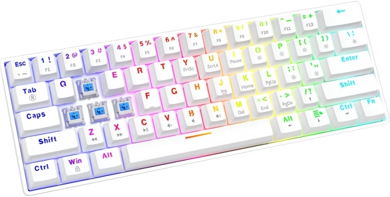 De Savio Whiteout X2 is een compact 60% mechanisch toetsenbord zonder functietoetsen, numeriek blok en pijltjestoetsen, waardoor je bureauruimte bespaart en maximale muisruimte hebt. OUTEMU Blue-schakelaars bieden een duidelijke tactiele feedback en een uitgesproken klik voor nauwkeurig typen en competitief gamen.