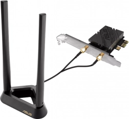De ASUS PCI-E kaart is de sleutel tot een high-speed draadloze verbinding. Met Wi‑Fi 7, dat tot 2,4x sneller is, verbeteren zowel de verbindingsprestaties als de netwerkbeveiliging. Door het nieuwe 6GHz-spectrum en 320 MHz te introduceren, worden congestie en storing verminderd.