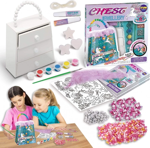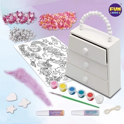 Maak een origineel houten sieradendoosje van 20x15x5,5 cm met deze set, die alles bevat wat u nodig heeft. Creativiteit kent geen grenzen, dus u kunt het versieren naar uw eigen fantasie. Kleurrijke kralen en andere versieringen voegen een unieke touch aan uw creatie toe.