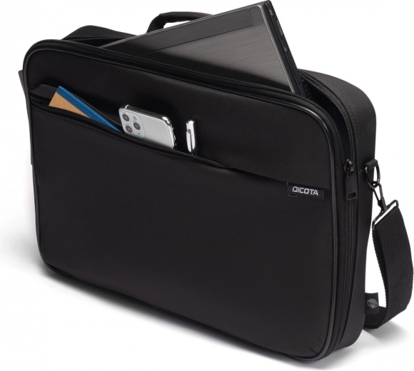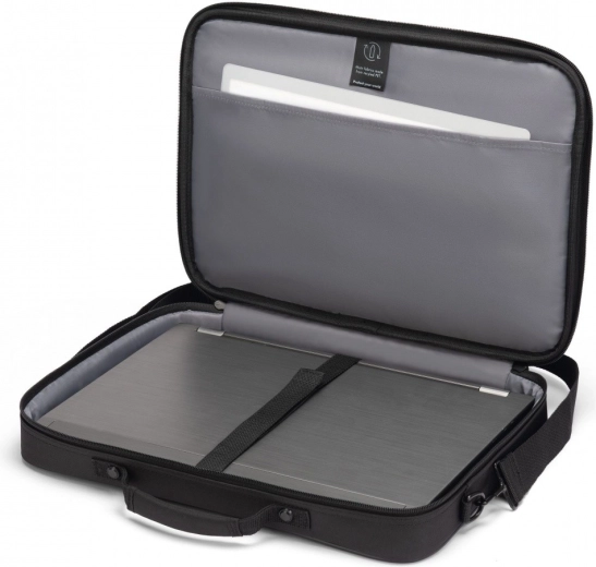 De bevestigingsband zorgt voor een stabiele positionering van uw laptop. Het praktische voorvak biedt voldoende ruimte voor mobiele accessoires zoals een smartphone, visitekaartjes en pennen. De verstelbare en afneembare schouderriem samen met de comfortabele handgreep maken de tas gemakkelijk draagbaar.