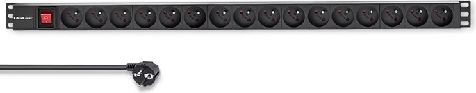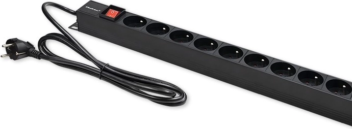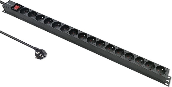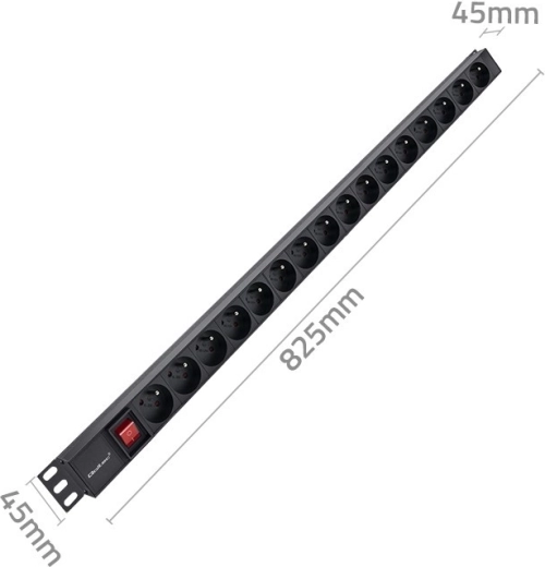 De keuze van de juiste PDU-strip moet functionaliteit, materiaalkwaliteit en aangeboden functies omvatten, zoals een verlichte schakelaar voor eenvoudige lokalisatie van de voeding. Deze strip is ideaal voor 19" rackkasten, biedt 16 stopcontacten van het type FRENCH en heeft een constructie van hoogwaardig aluminium in zwart, terwijl de contactdozen van duurzaam ABS-kunststof zijn. Deze constructie zorgt voor bestendigheid tegen mechanische schade en intensief gebruik. Speciale beugels aan beide zijden maken eenvoudige montage mogelijk. De stopcontacten zijn onder een hoek van 35 graden gerangschikt, wat het kabelmanagement vergemakkelijkt en het ruimtegebruik in de serverkast optimaliseert.
