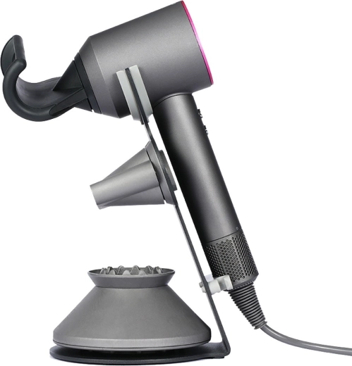Houd je DYSON Supersonic föhn en accessoires elegant geordend. Deze metalen standaard met nauwkeurig gevormde kop en magnetische bevestiging biedt een stabiele basis voor veilig neerzetten en snel gebruik. Siliconen elementen beschermen het oppervlak van zowel de föhn als de standaard.