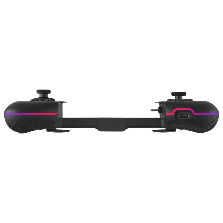 ROG Tessen is een mobiele gamepad voor gamers die overal nauwkeurige bediening, comfort en stijl willen. Met robuuste aluminium elementen, ergonomische grepen en mechanische schakelaars voor zowel knoppen als D‑pad krijg je een console‑gevoel bij het gamen op je telefoon. Het inklapbare design maakt meenemen makkelijk en beschermt tegelijk de USB‑C‑connector bij het plaatsen.