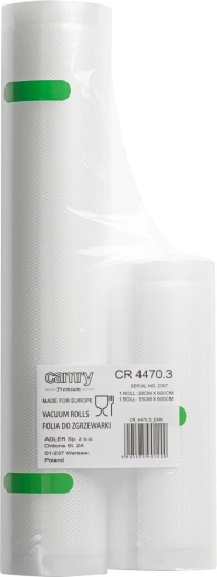 Folie voor vacuümsealers Camry CR 4470, Adler AD 4484, MS 4492, die ook kan worden gebruikt in andere afdichtingsapparaten met vergelijkbare afmetingen. Folie voor vacuümopslag van levensmiddelen, waardoor producten veel langer vers blijven. De luchtdichte verpakking met luchtzuiging maakt een langere bewaring van producten in de koelkast of vriezer mogelijk. Kan in de magnetron worden gebruikt en is geschikt voor Sous-vide koken. Daarnaast kunt u de folie niet alleen voor voedsel gebruiken, maar ook voor de bescherming van kleine voorwerpen, zoals munten, tegen vocht en stof. De folies zijn ideaal voor zowel thuis- als professioneel gebruik.