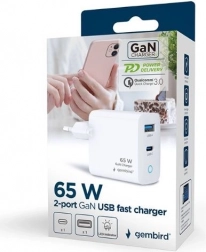 Universele 2‑poorts lader met 65 W vermogen vult betrouwbaar de energie aan voor je smartphones, oordopjes en ultrabooks. Moderne GaN-technologie zorgt voor hoge efficiëntie, minder warmteontwikkeling en compacte afmetingen, zodat de lader gemakkelijk in je zak of reistas past.