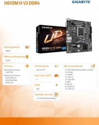 De GIGABYTE H610M H V3 DDR4 is een betrouwbaar moederbord voor dagelijks gebruik en kantoorsystemen. Het ondersteunt Intel Core-processors van de 14e/13e/12e generatie (socket LGA 1700) en dual-channel DDR4-geheugen. Dankzij de hybride digitale 4+1+1-voedingsfase, hoogwaardige audiocomponenten en storingsbescherming levert het stabiele prestaties en heldere audio.