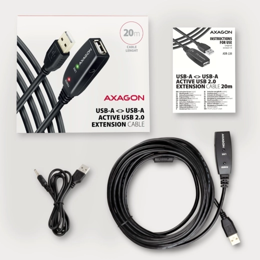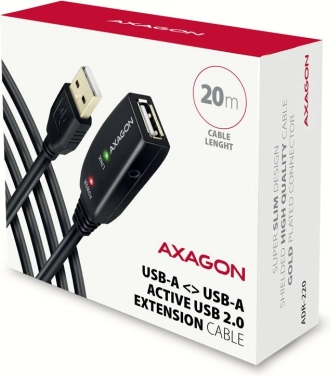 De Axagon USB 2.0 actieve verlengkabel van 20 meter is bedoeld om de USB‑verbinding tussen een computer en apparaten zoals muis, toetsenbord, webcam, printer of scanner te verlengen. De kabel bevat een geïntegreerde repeater die het verzonden signaal versterkt, waardoor gebruik over langere afstanden mogelijk is.