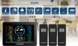 Slim weerstation BLAUPUNKT WS40BK met kleurendisplay (LCD) en tot vier gelijktijdige metingen (1 ingebouwd + 3 draadloze sensoren) zodat u temperatuur, luchtvochtigheid, luchtdruk, weerstrend en maanfasen altijd in één oogopslag ziet. Biedt nauwkeurige sensoren, min/max-historie, 12/24 u-klok met kalender, wekker met snooze en dimbare achtergrondverlichting. Voeding via netstroom of batterijen.