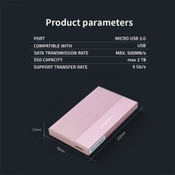 Compacte externe 2,5" SATA-behuizing van aluminium voor zowel SSD als HDD, met snel USB 3.0 tot 5 Gb/s, brede compatibiliteit met Windows/macOS/Linux en eenvoudige Plug&Play zonder stuurprogramma’s. De lichte en duurzame constructie zorgt voor veilige gegevensoverdracht en ondersteunt schijven tot 2 TB.