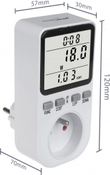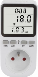 Deze meter heeft vier grote knoppen voor eenvoudige bediening en een overbelastingsalarm dat u waarschuwt wanneer de belasting de veilige limiet van 3680W overschrijdt. Het heldere display maakt het eenvoudig om gegevens zoals de hoeveelheid verbruikte energie en de kosten daarvan te lezen, wat helpt bij een efficiënte monitoring en beheersing van uw elektriciteitsuitgaven.