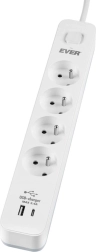 Bescherm je huishouden en kantoor met de overspanningsstekkerdoos EVER Protect met vier geaarde uitgangen en twee USB‑poorten (USB‑A + USB‑C). Dankzij de geïntegreerde snellader met een vermogen tot 3,4 A laad je eenvoudig smartphones, tablets en smartwatches op. Voor veilig gebruik zorgen de overspanningsbeveiliging, kinderbeveiliging, tweepolige schakelaar en LED‑indicator van de status van de beveiliging.