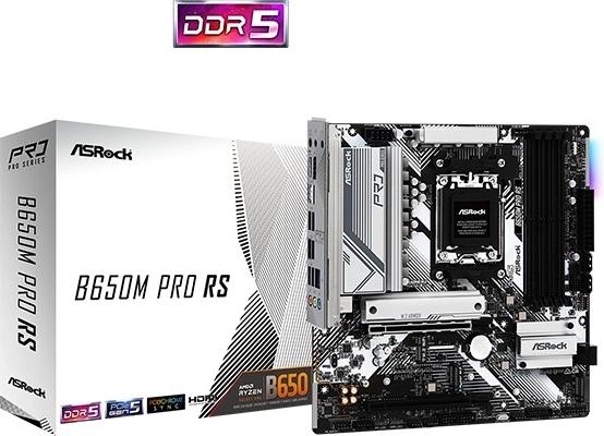 ASRock B650M Pro RS is een betrouwbaar microATX-moederbord voor het AMD AM5-platform, met een moderne uitrusting, snelle DDR5-geheugenondersteuning, PCIe 5.0 M.2 voor bliksemsnelle opslag en rijke connectiviteit inclusief HDMI, DisplayPort en Dragon 2.5G LAN. Een ideale keuze voor krachtige gaming- en productiviteitssystemen.
