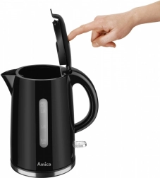 De moderne Amica elektrische waterkoker met een capaciteit van 1,7 liter is een geweldige hulp in je keuken. Hij blinkt uit door de eenvoudige bediening dankzij de 360° draaivoet, waardoor je de waterkoker in elke positie kunt plaatsen.