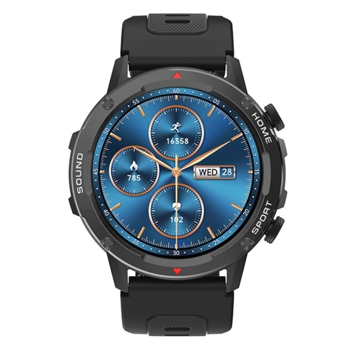 Tracer Hero is een smartwatch ontworpen voor zowel de stad als het terrein. De robuuste behuizing met IP67-bescherming weerstaat stof en regen, terwijl het scherpe 1,39" IPS‑display met hoog contrast perfecte leesbaarheid biedt in de zon en in de sportschool. Dankzij Bluetooth 5.2 ontvang je meldingen en met BT‑bellen handel je oproepen rechtstreeks vanaf je pols af – met ingebouwde microfoon en luidspreker. In de verpakking zitten drie gekleurde bandjes (zwart, donkerblauw, donkergroen), zodat je de look eenvoudig op je outfit afstemt.
