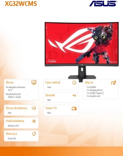 Duik in de actie met de 32" ROG XG32WCMS, die een hoge verversingssnelheid van 280 Hz combineert met bliksemsnelle respons voor uiterst vloeiend beeld. Dankzij de moderne interfaces USB‑C, HDMI en DisplayPort sluit je eenvoudig je gaming‑pc, console of laptop aan.