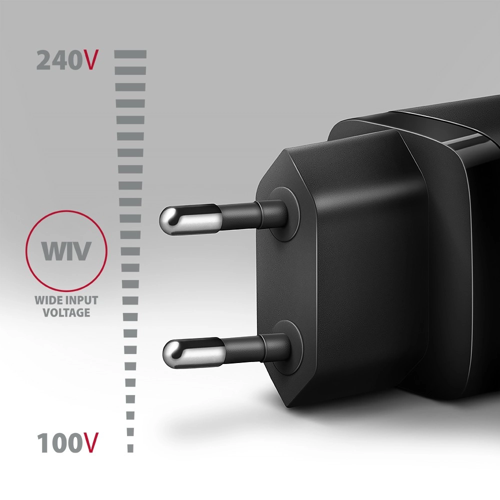 Brede compatibiliteit omvat PD 3.0/2.0, PPS, QC 4+/3.0/2.0, SFC/SFC 2.0, AFC, FCP, Apple PD en Apple 2.4A. Laadt iPhone 12–15 tot 20 W, modellen iPhone 13/14/15 Pro (Max) tot 27 W, Samsung Galaxy-telefoons tot 25 W (SFC) en 30 W bij de Ultra‑serie (SFC 2.0). Dankzij WIV (Wide Input Voltage) ideaal voor op reis.