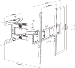 De universele muurbeugel is compatibel met tv’s van toonaangevende merken zoals Sony, LG, Samsung, Philips, Sharp, Panasonic en vele anderen. Ontworpen voor LCD-, LED- en OLED-tv’s tot 100 inch, mits ze voldoen aan de VESA-norm en het maximale gewicht niet overschrijden. Ondersteuning voor VESA-standaard: De beugel ondersteunt verschillende afmetingen: 100x200, 200x200, 200x300 tot 800x600 mm. De lange, dubbele arm maakt ruime draaibewegingen van het scherm mogelijk en biedt niveauregeling van +3/-3° na montage.