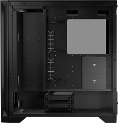 Het chassis is ontworpen voor waterkoeling. Bovenop de behuizing is ruimte voor een radiator tot 360 mm. Een even grote radiator past ook op de plek van de voorgeïnstalleerde ventilatoren aan de voorkant. Dezelfde radiator (360 mm) kan ook op het speciale moederbordframe worden gemonteerd met een maximale dikte van 52 mm. Aan de achterkant is er ruimte voor waterkoeling van 120/140 mm. Het doel van deze oplossingen is een echte gamemachine te creëren voor elke game. En dat alles in een robuust en luchtig ontwerp.
