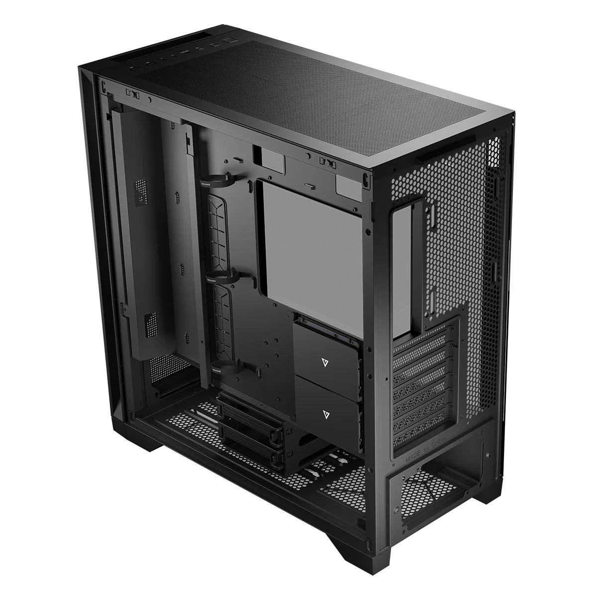 Het Volcano Expanse S MIDI-chassis is ontworpen met panelen in vierkante vorm. Daarom is de letter “S” in de naam afgeleid van het woord square (vierkant). Hij verschilt niet veel van zijn design-tweeling Volcano Expanse T Midi. We geven je vrije keuze in het paneelontwerp — kies wat jij mooi vindt.