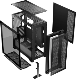 Vierkante ventilatieopeningen in het boven-, voor- en zijpaneel zorgen voor een goede luchtcirculatie. Om de instroom van stof te beperken is het frontpaneel uitgerust met een stoffilter. Omdat de panelen met klikbevestigingen vastzitten, is het reinigen van de filters zeer eenvoudig.