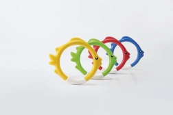 Elke ring is gemaakt van zacht, veilig materiaal dat prettig in de hand ligt en goed vast te houden is. De diameter van 14,5 cm zorgt voor een comfortabele grip, ook voor kleinere handen, terwijl het aantrekkelijke visdesign het speelplezier en de motivatie om te bewegen vergroot.