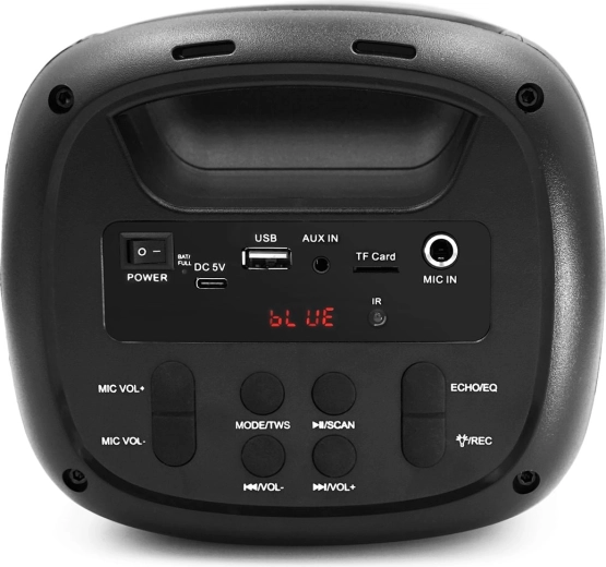 De luidspreker is ontworpen voor helder en krachtig geluid in een compact formaat. De geïntegreerde handgreep maakt dragen gemakkelijk en de kleurrijke LED-verlichting geeft elke track een party-sfeer. Dankzij de stabiele Bluetooth 5.0 + EDR-verbinding stream je moeiteloos muziek vanaf je telefoon of tablet zonder onderbrekingen.