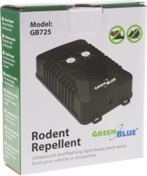 De GreenBlue verjager maakt gebruik van ultrasoon geluid met variabele frequentie in het bereik van 18-36 kHz. Deze geluiden zijn onschadelijk voor honden, katten en andere huisdieren, maar weren knaagdieren en marters effectief af. Het apparaat kan direct worden gevoed door een auto-accu, batterijen of een USB-kabel, wat voeding vanuit het netwerk mogelijk maakt. De installatie is eenvoudig - het kan onder de motorkap van een auto, aan de wand van een garage of een andere geschikte plek worden bevestigd.