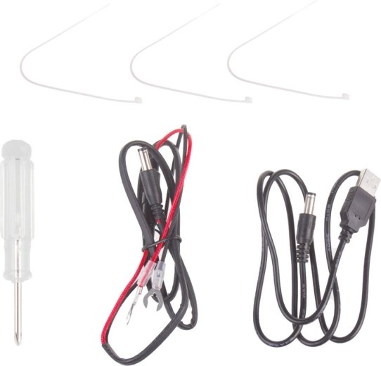 Het apparaat kan worden gevoed door een auto-accu, vier AA-batterijen of via een USB-kabel.