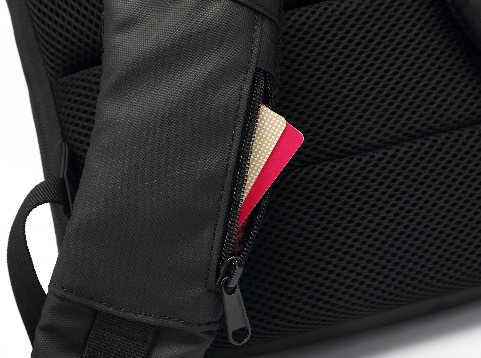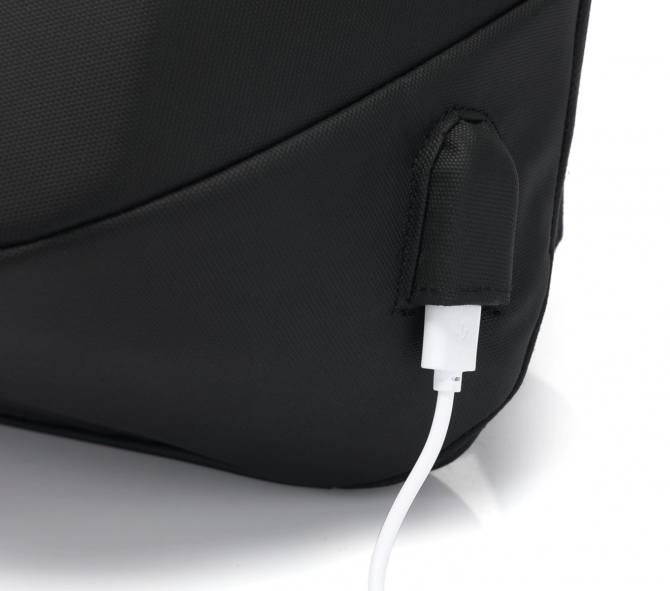 De zij-USB-poort maakt het gemakkelijk om apparaten op te laden tijdens het reizen met behulp van een powerbank die in de rugzak is geplaatst.