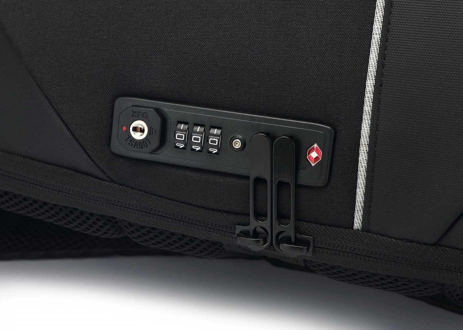 De rugzak is uitgerust met een gecertificeerd TSA-slot dat maximale veiligheid biedt en tegelijkertijd eenvoudige controles op luchthavens mogelijk maakt.