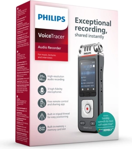 De PHILIPS VoiceTracer DVT6115 is een slimme voicerecorder, ontworpen voor heldere en natuurlijke opnamen in elke situatie. De drie zeer natuurgetrouwe microfoons met hoge signaal‑ruisverhouding, hoogwaardige ophanging en duidelijke kanaalscheiding leggen gedetailleerd stereogeluid vast dat klinkt als live. U neemt op in het universele MP3 of het ongecomprimeerde PCM (WAV) in bijna cd‑kwaliteit, en met de Philips VoiceTracer‑app bedient u het opnemen comfortabel op afstand.