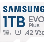 Breid de opslag van je telefoon, camera of console uit met de microSD-kaart SAMSUNG EVO Plus 1 TB met leessnelheden tot 160 MB/s, klassen U3, A2 en V30 voor vloeiende 4K‑video en snelle app-prestaties. Biedt brede compatibiliteit, 6-in-1 duurzaamheid tegen water, temperaturen, röntgenstralen, magneten, vallen en slijtage en wordt geleverd met een volwaardige SD-adapter.
