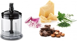 In de verpakking vindt u ook een hakmolenopzetstuk en een garde-opzetstuk, waarmee u een breed scala aan heerlijke gerechten kunt bereiden. Van gladde sauzen tot perfect opgeklopte slagroom – alles is mogelijk met deze multifunctionele mixer.