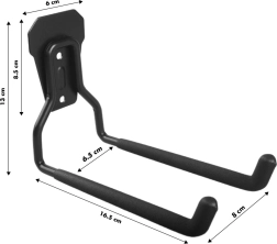 Deze haak is een ideale keuze voor wie orde en efficiënte ruimtebenutting waardeert. Dankzij het zwarte design integreert hij gemakkelijk in elke omgeving en draagt hij bij aan de esthetische uitstraling van de ruimte.